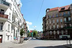 - ulica Czwartaków – przebiega od ulicy Rolnej do Dolnej Wildy, ma długość 324 m[4]. Przy ulicy znajdują się budynki mieszkalne z ok. 1929 i lat 30. XX w., niewpisane do rejestru zabytków[10].