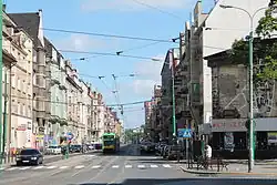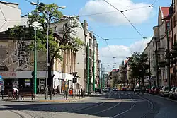 - ulica Ignacego Prądzyńskiego – przebiega od ulicy Sikorskiego do Fabrycznej, ma długość 428 m[4]. Przy ulicy położone są budynki mieszkalne m.in. z lat 1900-1911 oraz Zespół Szkół Integracyjnych, którego główny budynek, pawilon szkolny I i II, sala gimnastyczna i ogrodzenie zostały wpisane do rejestru zabytków w 1984 roku (nr rej. A259)[22]. Nazwa ulicy upamiętnia polskiego generała Ignacego Prądzyńskiego. Od 1900 do 1920 oraz od 1939 do 1946 ulica nosiła nazwę Gneiseaustrasse[23].