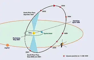 - ↑ NSSDC Master Catalog – Ulysses Trajectory Details. nssdc.gsfc.nasa.gov. [zarchiwizowane z tego adresu (2009-08-01)]. (ang.)