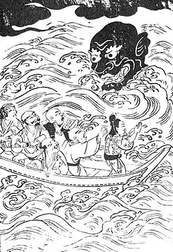Według niektórych przekazów miał on ciało żółwiaka chińskiego i łysą głowę, osiągał długość do 1,80m. Mimo dość dużych rozmiarów nie należał on do odważnych, złapany przez ludzi płakał i błagał o życie. Z kolej w niektórych opowieściach jest on potworem o czarnej barwie i miał wielkość połączonych ze sobą sześciu ludzkich głów. Był on dużo groźniejszy dla ludzi, pojawiał się na środku morza i wywoływał silne wiatry oraz fale. Aby uniknąć zatopienia należało nie patrzeć na niego i zachować absolutną ciszę, jeśli ktoś wypowiedział jego imię wywracał statek, na którym znajdował się nieszczęśnik. W historii z Kiizōtanshū pojawia się czarny potwór morski, który w miejscu ust miał długi dziób. Gdy jedna z kobiet odmawiających sutry wyskoczyła za burtę pochwycił ją i wyrzucił wysoko w górę.