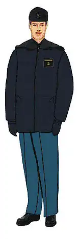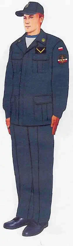 - ↑ W zimie można nosić czapkę futrzaną, a na jednostkach pływających również czapkę wełnianą