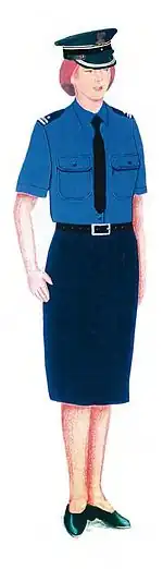 - mundur wyjściowy (kurtka ze spodniami lub spódnicą (kobiety)) w trzech odmianach: khaki (umundurowanie wojsk lądowych), stalowej (umundurowanie wojsk lotniczych) i granatowej (umundurowanie marynarki)