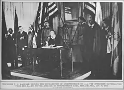 26 października 1918 roku Tomáš Masaryk ogłosił Deklarację Wspólnych Celów Stowarzyszenia na rzecz niepodległości Czechosłowaków, Polaków, Jugosłowian, Ukraińców, Rusinów zakarpackich, Litwinów, Rumunów, Albańczyków, Syjonistów oraz Ormian, a także irrendentystów z Włoch oraz Grecji[3][4]. Podpisanie deklaracji odbyło się podczas spotkania w Filadelfii w Pensylwanii w Independence Hall.
