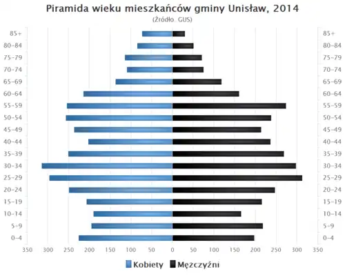 Piramida wieku mieszkańców gminy Unisław w 2014 roku[1].