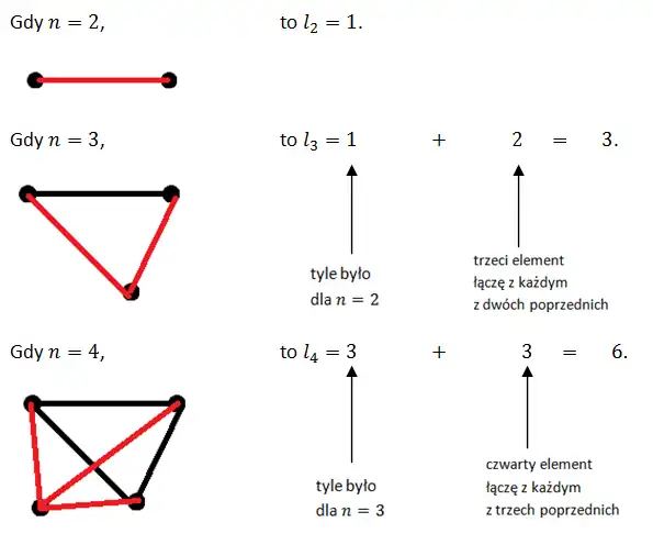 Przy rozwiązywaniu tego zadania można wspomóc się rysunkami na których punkt oznacza element zbioru a odcinek – zbiór dwuelementowy zawierający punkty, które łączy odcinek.
