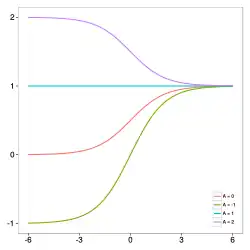 Jeżeli , otrzymamy funkcję logistyczną z punktem przegięcia w czasie .