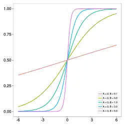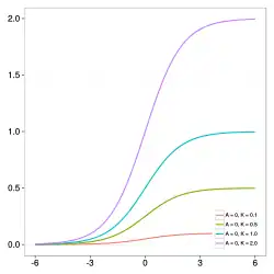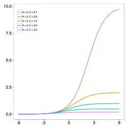 Uogólniona funkcja logistyczna ma następującą postać[3]:
