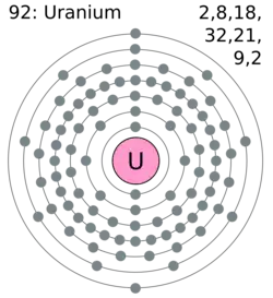 Uran (U, łac. uranium) – pierwiastek chemiczny z grupy aktynowców w układzie okresowym. Wśród pierwiastków występujących naturalnie na Ziemi ma największą liczbę atomową – 92 (nie licząc śladowych ilości