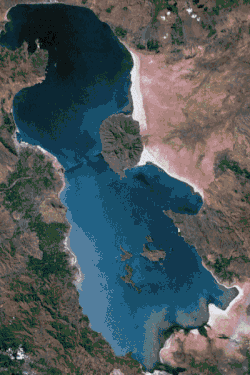 Jezioro Urmia, zdjęcie satelitarne wykonane w 2014 r. | |