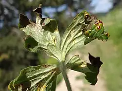 ![]() Kupki zarodni na liściach zawilca gajowego | |