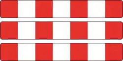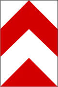 | U-3c: tablica prowadząca ciągła w prawo | Tablica jest umieszczana na skrzyżowaniach „T” w celu uprzedzenia o możliwych kierunkach jazdy. | |||||||||||