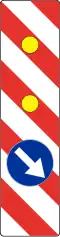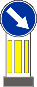 U-5b: słupek przeszkodowy zespolony ze znakiem C-9 | Słupek jest ten sam jak U-5a:, tyle że ze znakiem C-9 nakaz jazdy z prawej strony znaku | ||||||||||