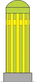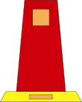 Do oznaczania części obiektów znajdujących się w skrajni poziomej drogi stosuje się tablice U-9a i U-9b według wzoru pokazanego na rysunku 4.1.1. Tablice mają kształt prostokąta o szerokości 0,50 m i wysokości 1,25 m. Mają one pasy na przemian barwy żółtej i czarnej.Obwieszczenie Ministra Infrastruktury z dnia 9 września 2019 r. w sprawie ogłoszenia jednolitego tekstu rozporządzenia Ministra Infrastruktury w sprawie szczegółowych warunków technicznych dla znaków i sygnałów drogowych oraz urządzeń bezpieczeństwa ruchu drogowego i warunków ich umieszczania na drogach (Dz.U. z 2019 r. poz. 2311) - ↑