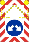 U-4c: tablica rozdzielająca stosowana podczas robót drogowych | Tablicę umieszcza się wtedy, gdy pojazd może skręcić w lewo lub prawo, gdy na drodze prowadzone są roboty. | ||||||||||