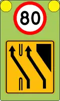 | U-3d: tablica prowadząca ciągła w lewo | Tablica jest umieszczana tak samo jak U-3c, tyle że prowadzi w lewo. | |||||||||||