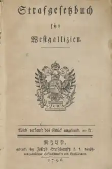 Ustawa karna pod nazwą Strafgesetzbuch für Westgallizien weszła w życie na terytorium trzeciego zaboru austriackiego z dniem 1 stycznia 1797 roku. Kodeks miał zapewniać na terenie Galicji ład i porządek oraz uporządkowanie wymiaru sprawiedliwości na nowo przyłączonym terytorium[2].