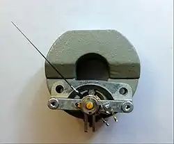 - cewkę nawiniętą na karkasie, którego oś trwale umocowana jest w polu magnesu,