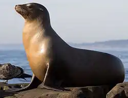 Zalophus californianus | (Lesson, 1828) | uszanka kalifornijska | gatunek monotypowy | północno-wschodni Ocean Spokojny od południowo-środkowej Alaski, przez przybrzeżną Kanadę i Stany Zjednoczone do Islas Marías (u wybrzeży Nayarit) i Zatoki Kalifornijskiej (Meksyk) | DC: do 240 cm MC: do 390 kg |
