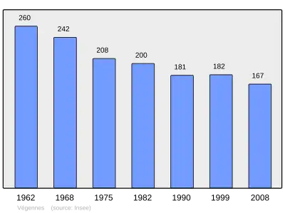 Według danych na rok 1990 gminę zamieszkiwało 181 osób, a gęstość zaludnienia wynosiła 18 osób/km² (wśród 747 gmin Limousin Végennes plasuje się na 448. miejscu pod względem liczby ludności, natomiast pod względem powierzchni na miejscu 555.).