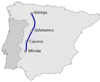 - ↑ Vía de la Plata route. rutadelaplata.com. [dostęp 2014-11-27]. (ang.).
