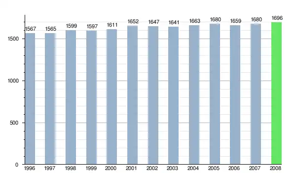 Według danych z dnia 31 grudnia 2012, wieś zamieszkiwało 1670 osób, w tym 877 kobiet i 793 mężczyzn[6].