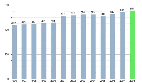 Zmiany liczby ludności w miejscowości Vítkovce od 1996 roku[8].