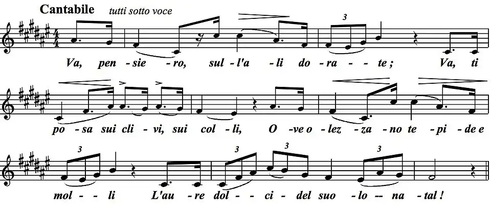 - Nagranie Va, pensiero w formacie mp3 na licencji Creative Commons. liberliber.it. [zarchiwizowane z tego adresu (2013-03-18)].