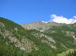 ![]() Miejscowość Ollomont. W tle szczyty bocznego grzbietu masywu Mont Velàn | |