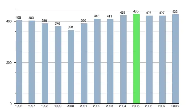 Zmiany liczby ludności w miejscowości Veľká Lúka od 1996 roku.