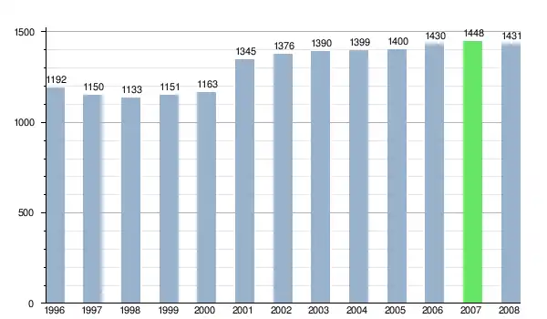 Według danych z dnia 31 grudnia 2012 roku, wieś zamieszkiwało 1414 osób, w tym 720 kobiet i 694 mężczyzn[7].