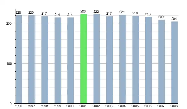 Według danych z dnia 31 grudnia 2012 roku, wieś zamieszkiwało 219 osób, w tym 129 kobiet i 90 mężczyzn[6].