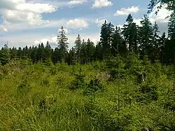 - ↑ Drzewostan całego Obszaru Chronionego Krajobrazu Jesioniki obejmuje: świerk pospolity 84%, buk zwyczajny 10%, modrzew europejski 1,5%, klon jawor 1,1%, brzoza 1%, olsza czarna 0,8%, kosodrzewina 0,4%, olsza szara 0,3%, (jodła pospolita, jesion wyniosły i lipa) po 0,2%, sosna zwyczajna 0,1%, pozostałe (sosna błotna, dąb, grab, klon zwyczajny, wiąz, jarząb, olsza zielona, topola osika, topola i wierzba iwa) łącznie 0,2% (→ Analýza vlivu lesního hospodaření na lesní ekosystémy v CHKO Jeseníky. hnutiduha.cz ↓).