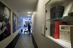 Do wnętrza muzeum prowadzi wąski korytarz. Na jednej z jego ścian umieszczono portrety De Andre, Tenco, Paolego, Bindiego, Lauziego i Fossatiego, na drugiej natomiast inne pamiątki, takie jak nuty, płyty, książki należące do Gianniego Tassio oraz zapiski pozostawione przez odwiedzających (w tym dwie dedykacje od Dori Ghezzi i Nandy Pivano). Korytarz a także cała galeria ma, według wyjaśnień architekt Marty Merlo z pracowni Canneto, nawiązywać swym wyglądem do uliczek starego miasta Genui. Centralnym punktem ekspozycji jest słynna gitara Esteve 97. Na ścianach galerii można podziwiać stare płyty gramofonowe Fabrizia De André, tworzące praktycznie jego całą jego dyskografię (płyty długogrające i single), a także wydawnictwa innych czołowych nazw i nazwisk genueńskiej sceny muzycznej, od New Trolls do Francesca Bacciniego. W centrum galerii, zwanym piazza, na półkach i regałach znajdują się artykuły na sprzedaż: wszelkiego rodzaju książki poświęcone Fabriziowi De André, Luigiemu Tenco, Ivanovi Fossatiemu, partytury, śpiewniki, płyty CD i DVD, i różne przedmioty (t-shirty, kubki, broszki i breloki). W niewielkiej bocznej salce znajduje się duży, interaktywny ekran dotykowy, za pośrednictwem którego można zobaczyć wkład specjalny na rzecz muzeum, wysłać wirtualne kartki, napisać wiadomości i dedykacje, a poprzez gry i quizy sprawdzić swoją wiedzę na temat Fabrizia De André i szkoły genueńskiej[4].