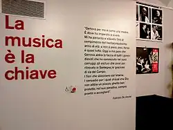 memorabilia po Fabriziu De André i innych przedstawicielach scuola genovese dei cantautori: czasopisma, płyty gramofonowe, plakaty filmowe, instalacje multimedialne |