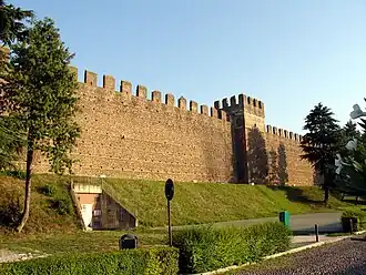Zamek, czyli Castello Scagliero - został zbudowany na przełomie XII i XIII w. przez panujący ród Della Scala Budowę rozpoczęto prawdopodobnie w 1199, po bitwie pod Ponti dei Molini, a zakończono w 1202. W obrębie murów znajduje się siedem niewielkich wież zwanych „Torresine”. Zostały one zbudowane z materiału pochodzącego z rozebranego łuku Tyberiusza. Późniejsze wojny zniszczyły większą część zamku, który został jednak odbudowany dzięki staraniom Republiki Weneckiej. Od 1450 zamek był opuszczony i dopiero kilka wieków później się nim zainteresowano. Został kupiony przez prywatnych właścicieli. W 1890 odbudowano główną wieżę zamkową i umieszczono w niej zegar.