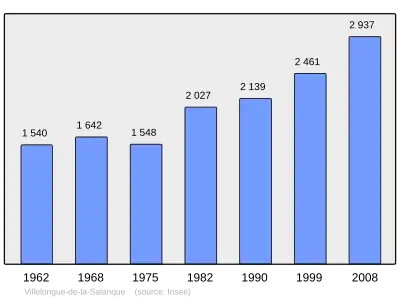 Według danych na rok 1990 gminę zamieszkiwało 2139 osób, a gęstość zaludnienia wynosiła 297 osób/km² (wśród 1545 gmin Langwedocji-Roussillon Villelongue-de-la-Salanque plasuje się na 180. miejscu pod względem liczby ludności, natomiast pod względem powierzchni na miejscu 891.).