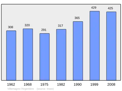 Według danych na rok 1990 gminę zamieszkiwało 365 osób, a gęstość zaludnienia wynosiła 45 osób/km² (wśród 1545 gmin Langwedocji-Roussillon Villemagne-l’Argentière plasuje się na 584. miejscu pod względem liczby ludności, natomiast pod względem powierzchni na miejscu 851.).