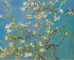 Kwitnąca śliwa (według Hiroshige) (1887), Muzeum Vincenta van Gogha. Portret kwitnącego drzewa ze znakami kanji, umieszczonymi zarówno na drzewie, jak i na obu pionowych krawędziach obrazu.
