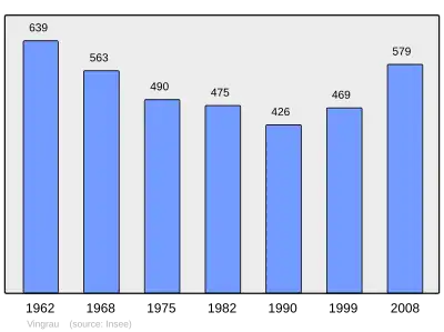 Według danych na rok 1990 gminę zamieszkiwało 426 osób, a gęstość zaludnienia wynosiła 13 osób/km² (wśród 1545 gmin Langwedocji-Roussillon Vingrau plasuje się na 551. miejscu pod względem liczby ludności, natomiast pod względem powierzchni na miejscu 154.).