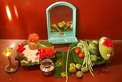 Charakterystycznym elementem jest vishukkani – rytualna kompozycja darów ofiarnych, składająca się z przedmiotów przynoszących szczęście, takich jak: