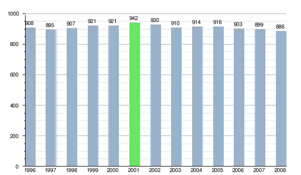 Według danych z dnia 31 grudnia 2012, wieś zamieszkiwało 860 osób, w tym 428 kobiet i 432 mężczyzn[7].