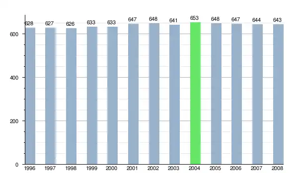 Według danych z dnia 31 grudnia 2012 roku, wieś zamieszkiwało 657 osób, w tym 341 kobiet i 316 mężczyzn[7].