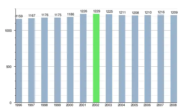 Zmiany liczby ludności w miejscowości Vyšný Žipov od 1996 roku.