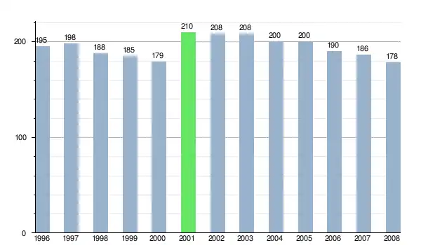 Zmiany liczby ludności w miejscowości Vyšný Hrabovec od 1996 roku.