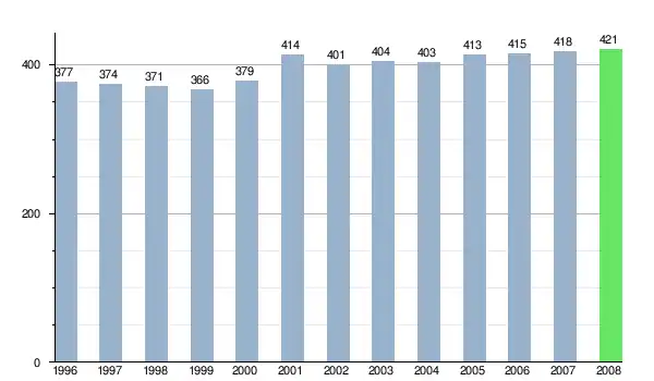 Zmiany liczby ludności w miejscowości Vyšný Klátov od 1996 roku.