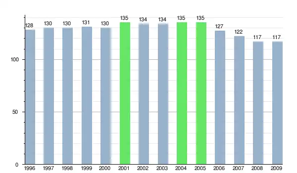 Zmiany liczby ludności w miejscowości Vyšný Tvarožec od 1996 roku.