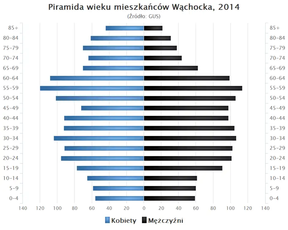 - Piramida wieku mieszkańców Wąchocka w 2014 roku[2].