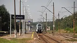 Przez miasto przebiega linia kolejowa nr 25 Łódź Kaliska – Dębica. Stacja wyposażona jest w komputerowe urządzenia sterowania ruchem kolejowym oraz posiada oprócz torów głównych zasadniczych, 2 tory główne dodatkowe i 3 tory boczne. Pociągi osobowe zatrzymują się przy zmodernizowanym wysokokrawędziowym peronie nr 2, znajdującym się pomiędzy torami 1 i 2, istnieje również możliwość wjazdu pociągu osobowego na tor nr 3 przy peronie nr 1, jednak ten peron nie został zmodernizowany.