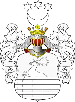 - ↑ Tadeusz Gajl: Herbarz polski od średniowiecza do XX wieku : ponad 4500 herbów szlacheckich 37 tysięcy nazwisk 55 tysięcy rodów. L&L, 2007, s. 375. ISBN 978-83-60597-10-1.