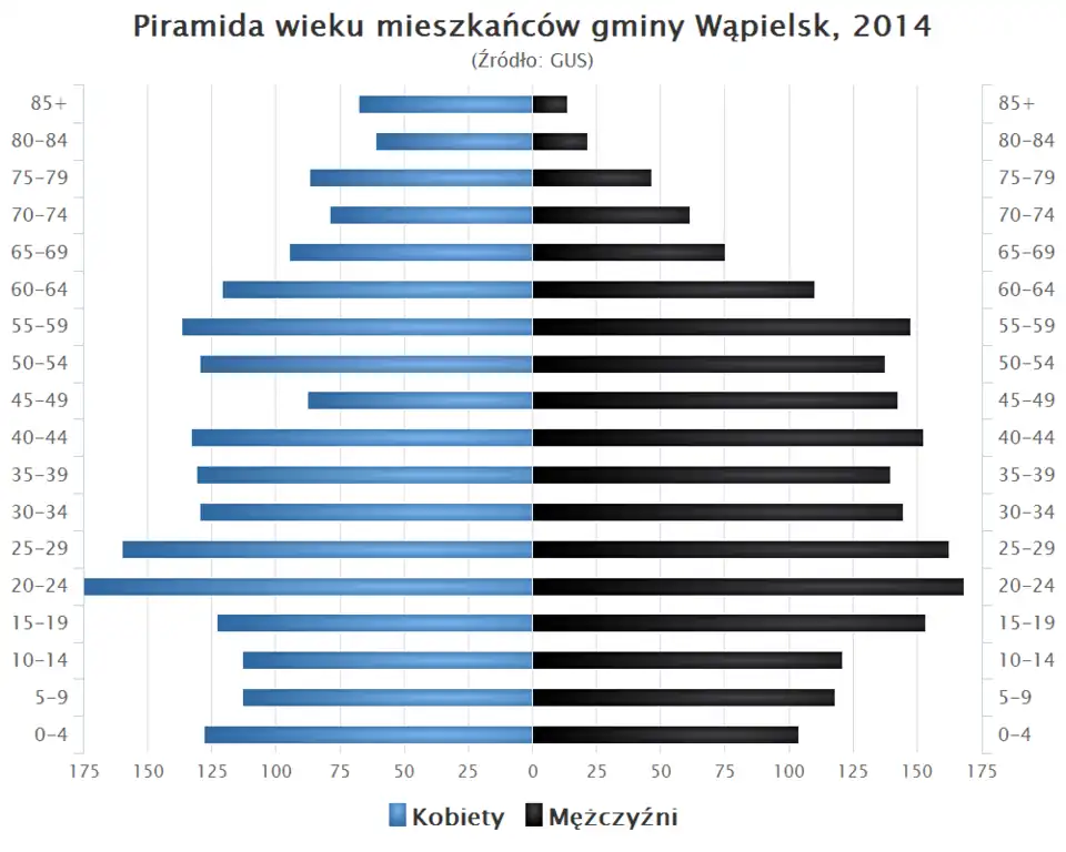 - Piramida wieku mieszkańców gminy Wąpielsk w 2014 roku[1].